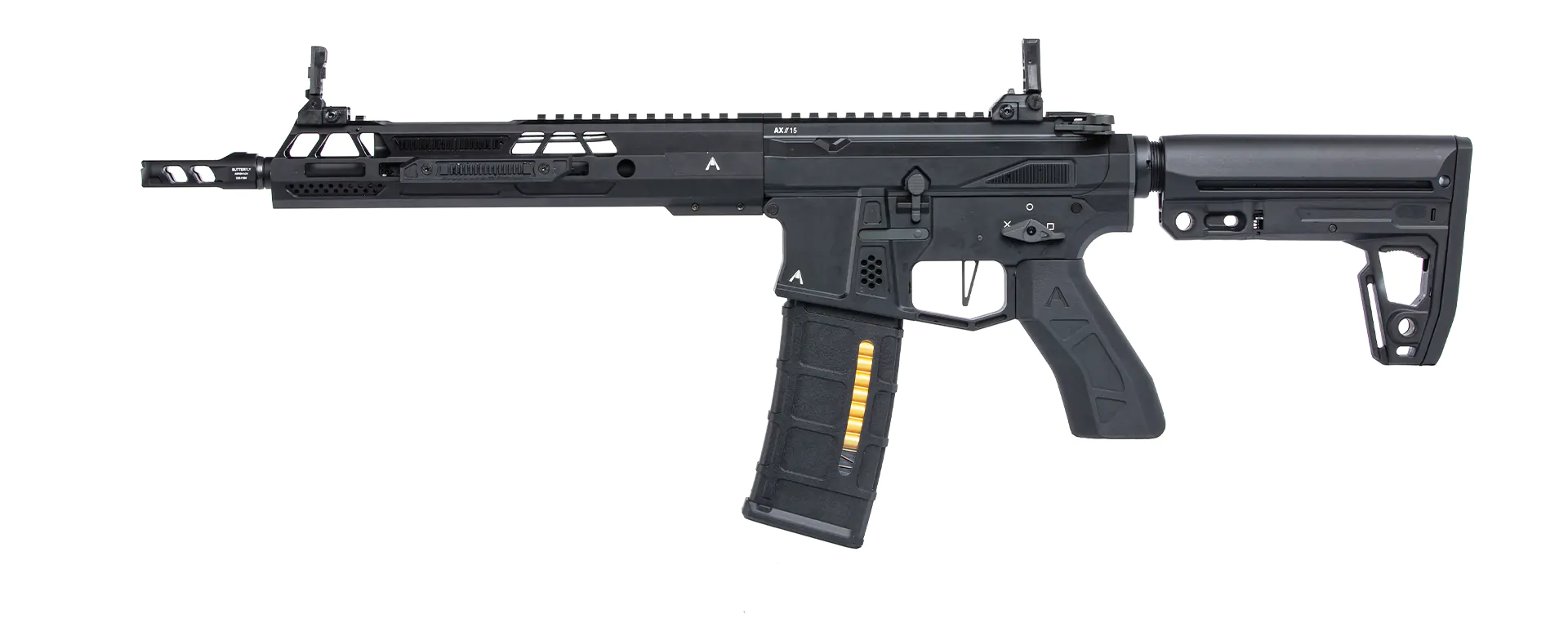 QD Sling Sockets – Located on both sides of the handguard and stock for single- or two-point sling setups.